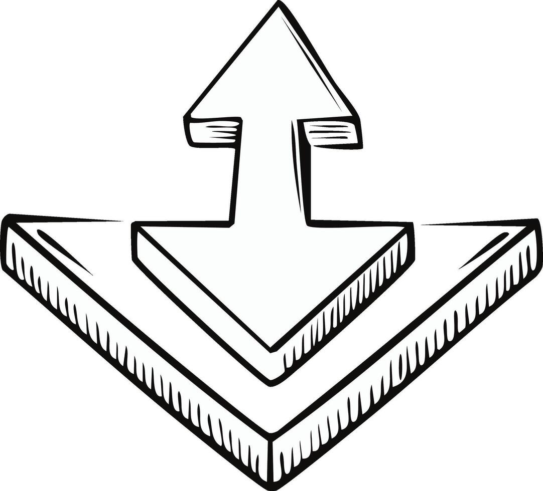 Hand drawn 3D up and down arrow sketch icon for direction or navigation Pro Vector