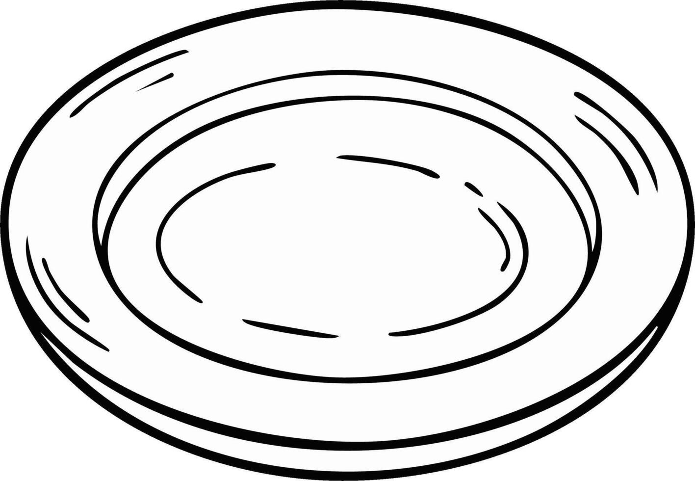 Simple hand drawn sketch of a round empty dinner plate with a rim and inner concentric circles Pro Vector