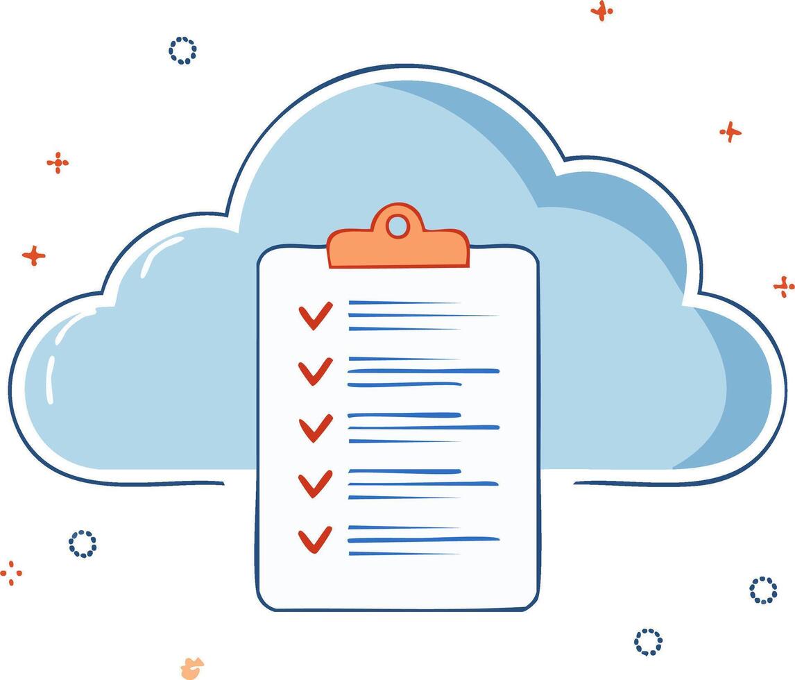 Cloud computing technology with clipboard checklist for data management and task completion Pro Vector