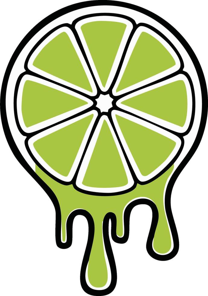 Graphic illustration of a lime wedge with dripping lime juice Pro Vector