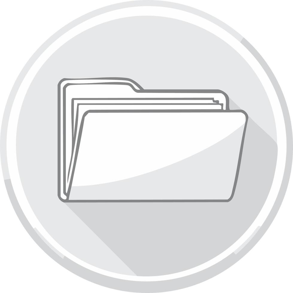 Grey Outline Open Folder Icon with Documents Flat Design Long Shadow Style Circle Graphic Pro Vector