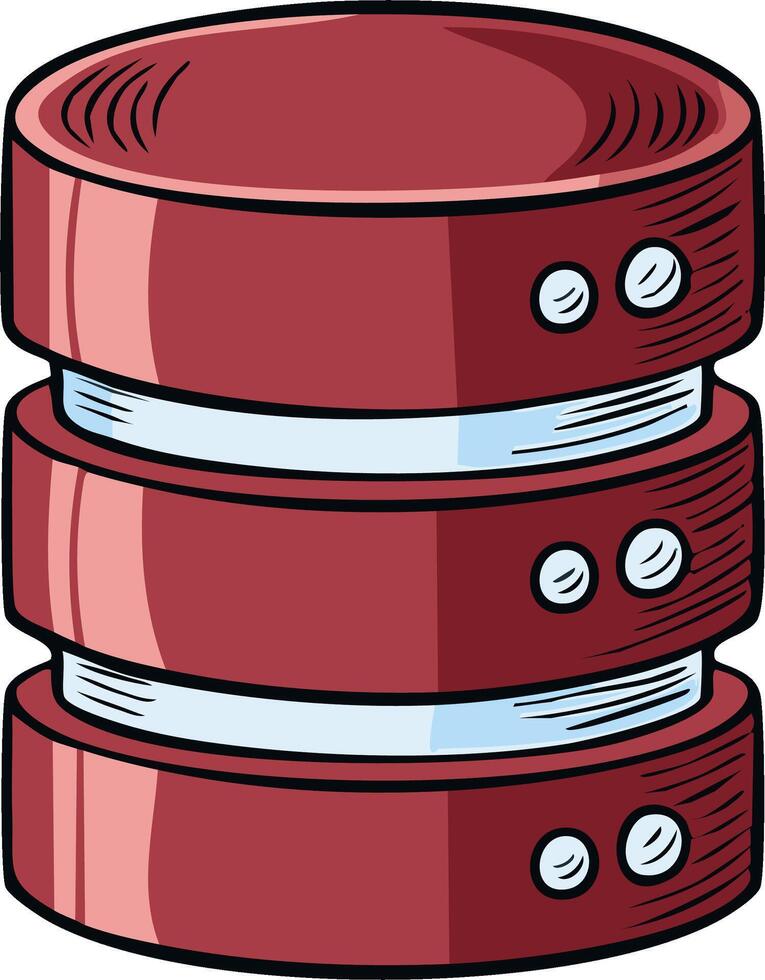 Stylized illustration of a three-tiered maroon database server with blue accent lines and indicator lights Pro Vector