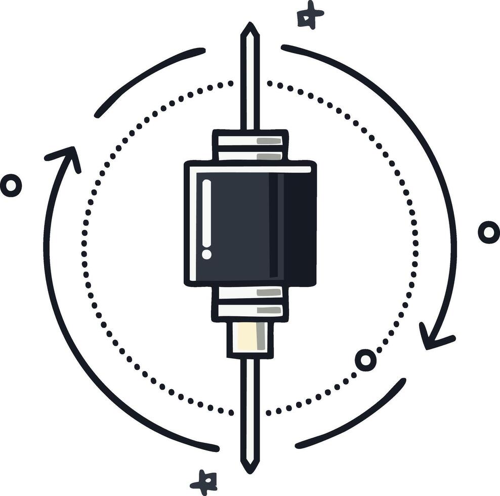 Stylized illustration of a drill bit mechanism with circular arrows and dotted line indicating rotation or process Pro Vector