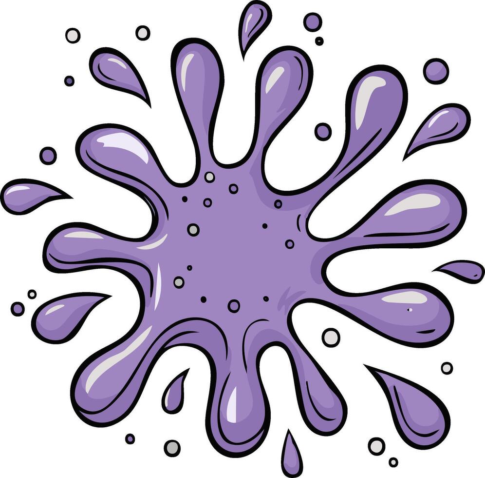 Abstract cartoon purple splash with blobs and drops, spilling liquid graphic Pro Vector