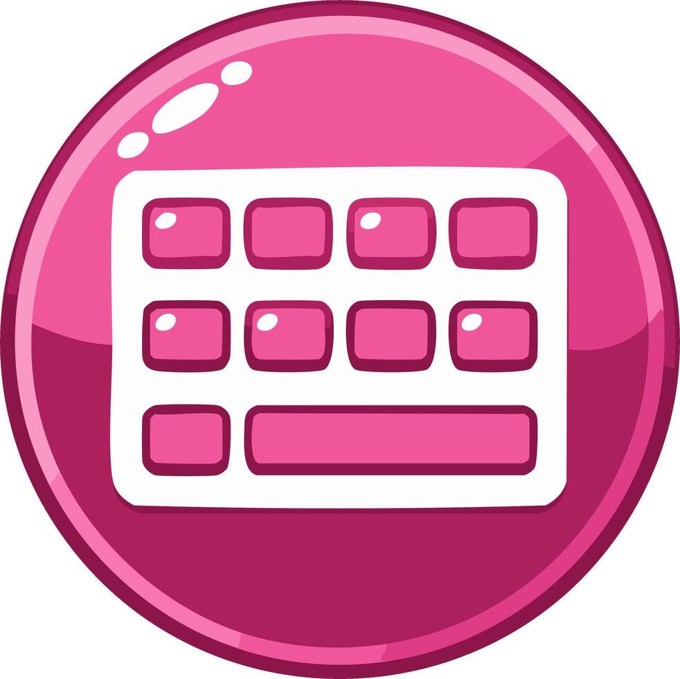 Cartoon Keyboard Icon Shiny Pink Button with Square Keys for Technology Design Pro Vector