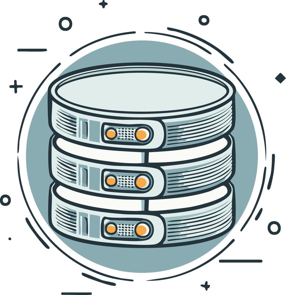 Illustration of a stylized data server hardware with abstract decorative elements in a circle Pro Vector