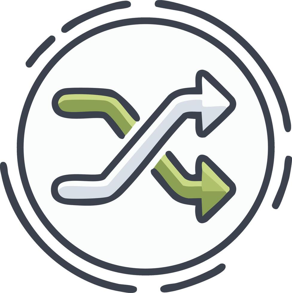 Circular shuffle icon with intertwined green and white arrows for random play or mixed sequence Pro Vector