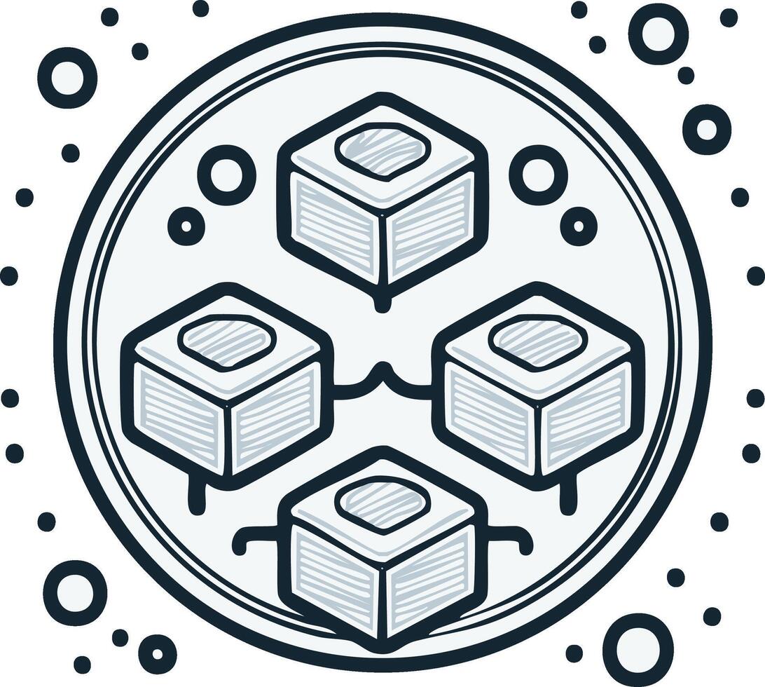 Blockchain technology concept with connected data blocks in a network illustration Pro Vector