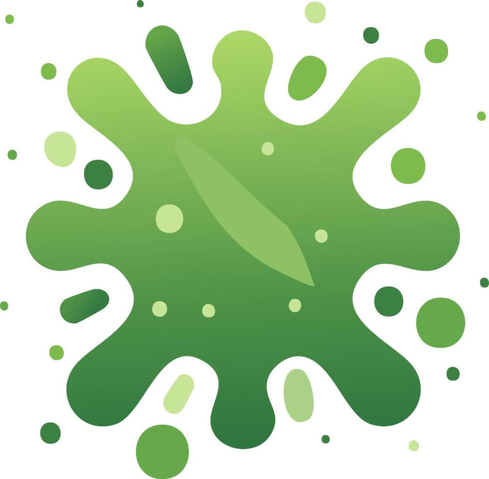 Vibrant green abstract fluid blob with small floating particles science Pro Vector