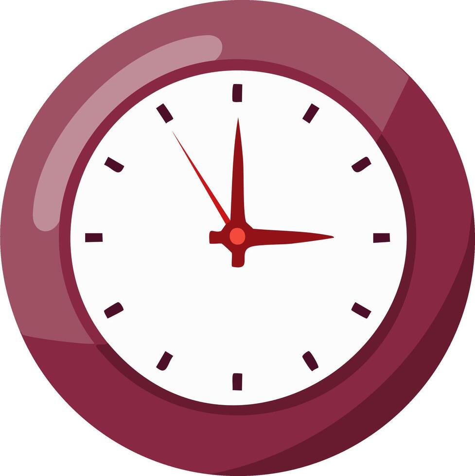 Modern round clock with red hands indicating time against a white background, simple design Pro Vector