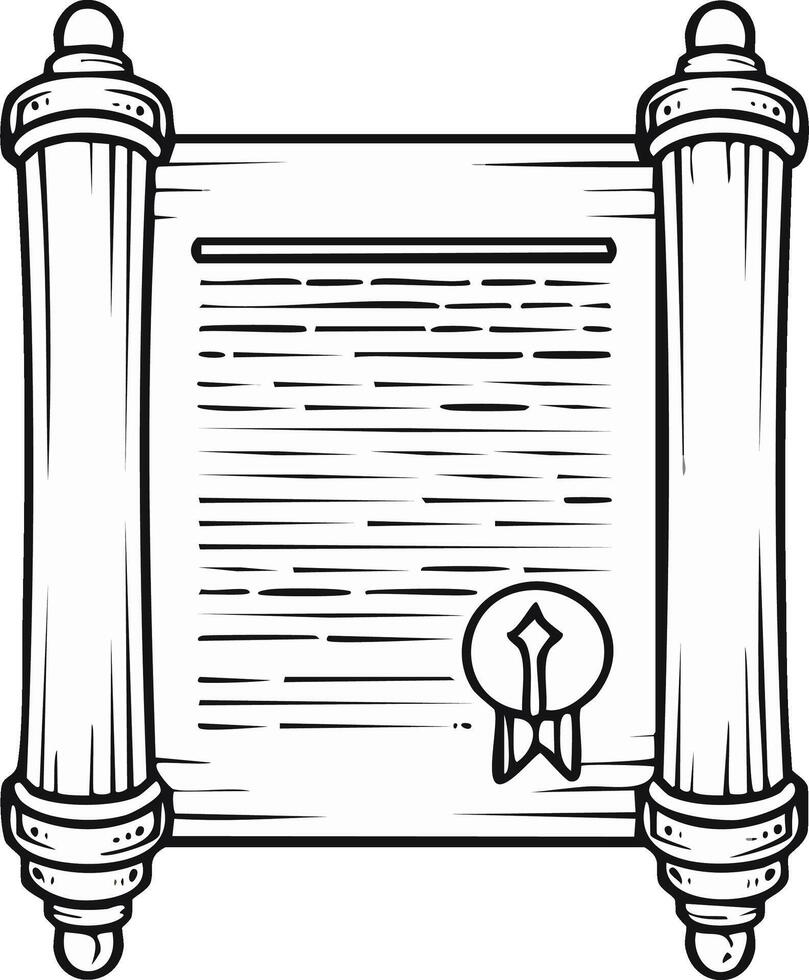 Ancient Scroll with Seal, Hand-Drawn Illustration. Parchment Document with Text, Ribbon, and Emblem. Manuscript Design Element Pro Vector