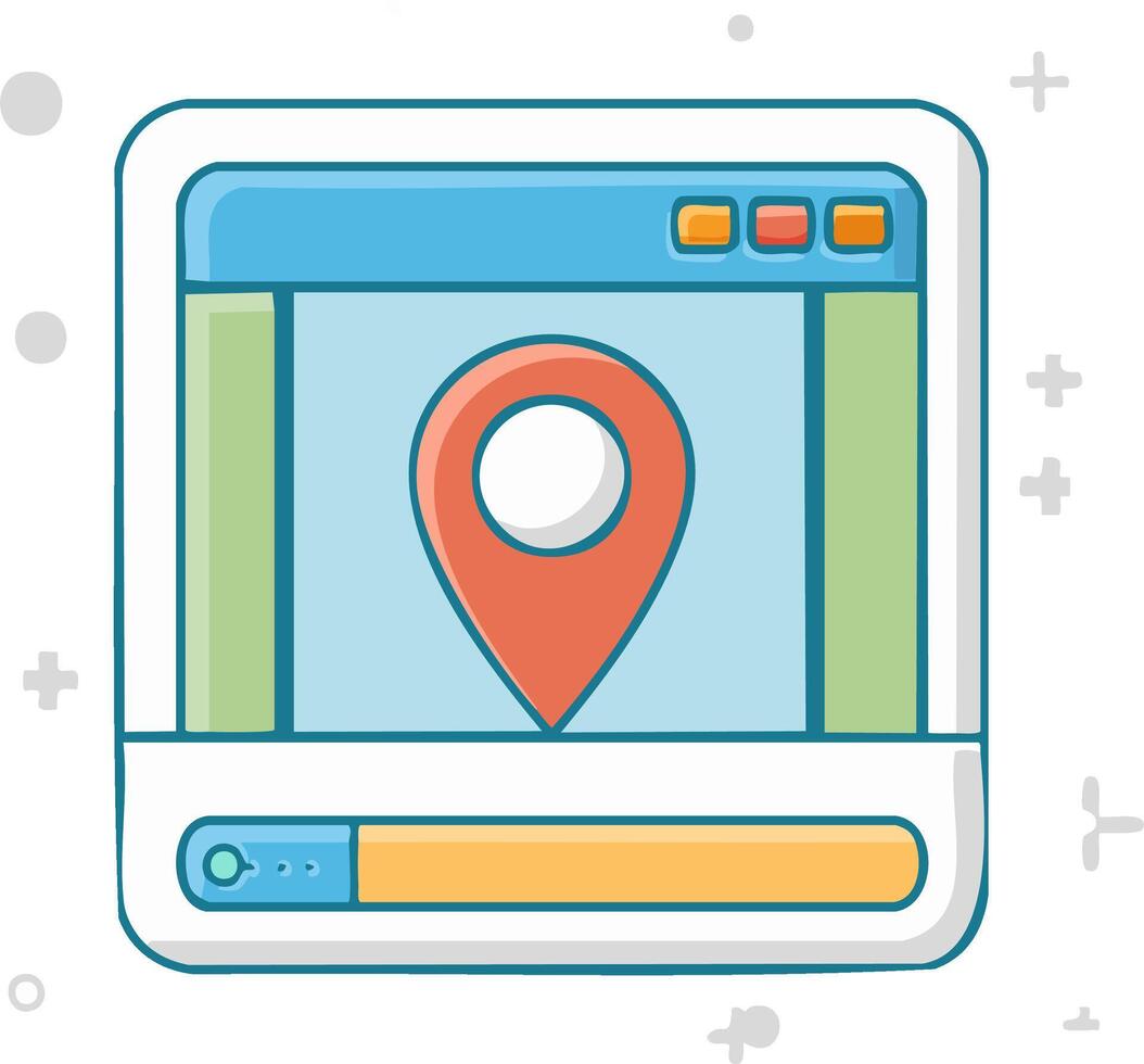 Cartoon location pin inside modern app interface with progress bar, bright design elements Pro Vector
