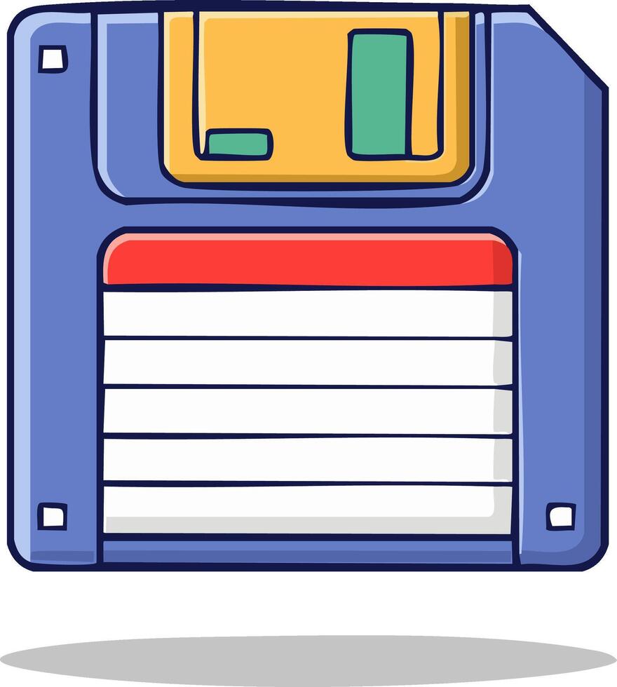 Retro floppy disk illustration with a blue casing and yellow label representing data storage Pro Vector