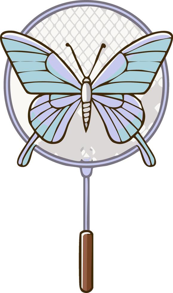 Light Blue Butterfly Captured in a Round Net with a Wooden Handle Pro Vector