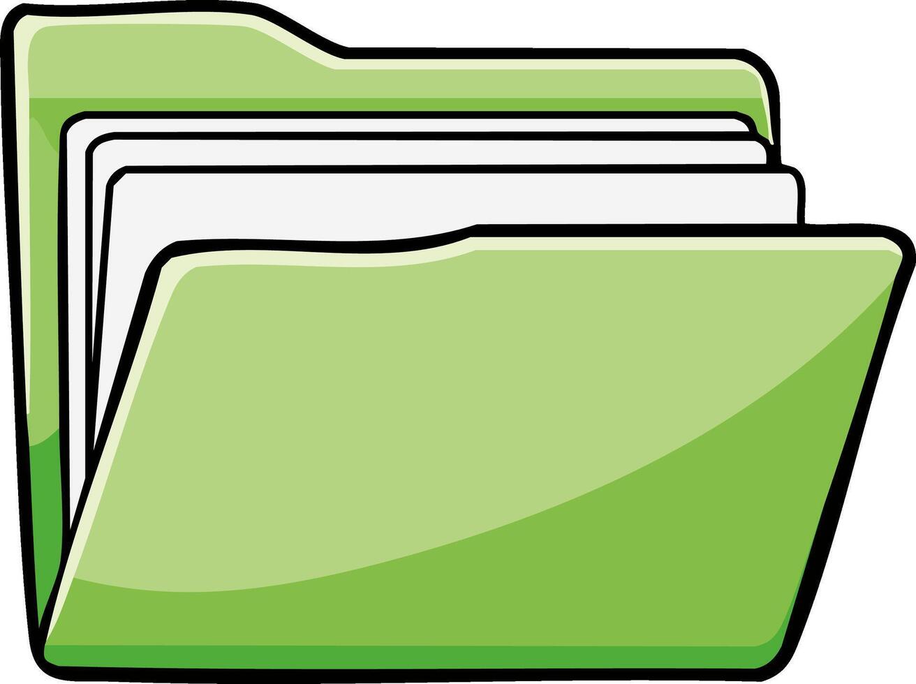 Green folder with several documents inside used to keep organized data for business Pro Vector