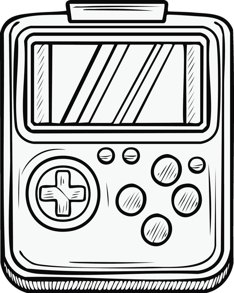 Handheld gaming console outline icon. Mobile game controller doodle. Retro entertainment illustration Pro Vector