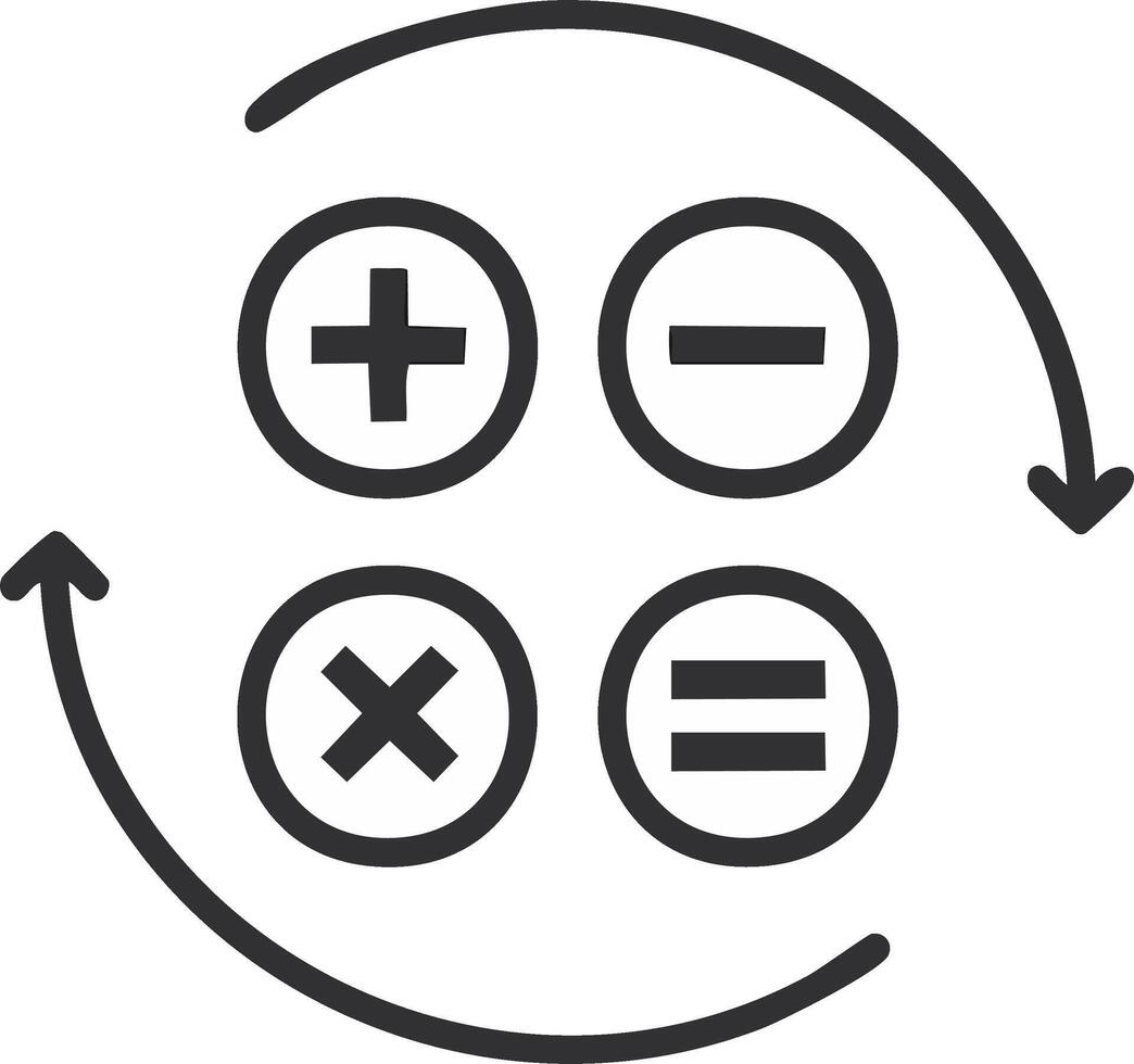 Minimalist icon of mathematical symbols in a continuous circular process Pro Vector