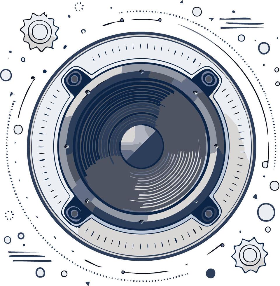 Speaker with circular frame hand drawing design sound and audio system Pro Vector