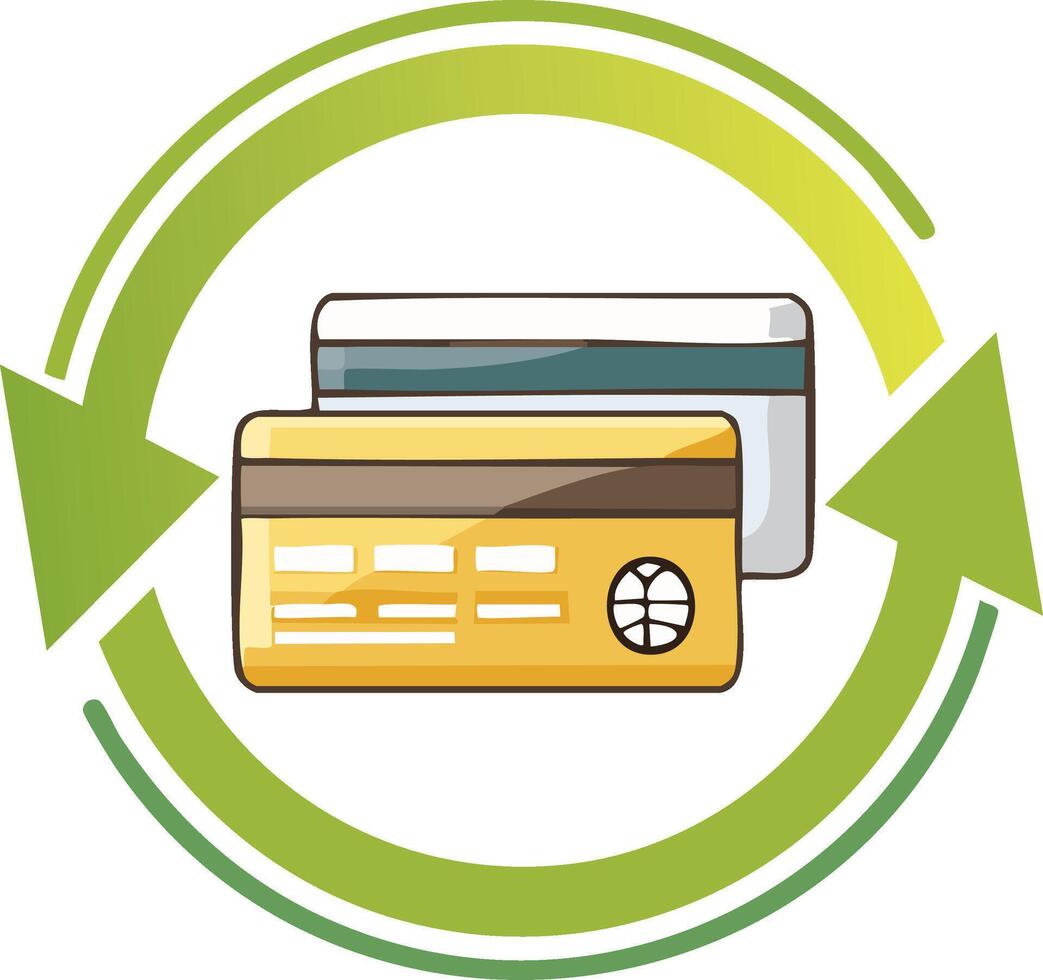 Digital payment credit card transaction loop with green circular arrows Pro Vector