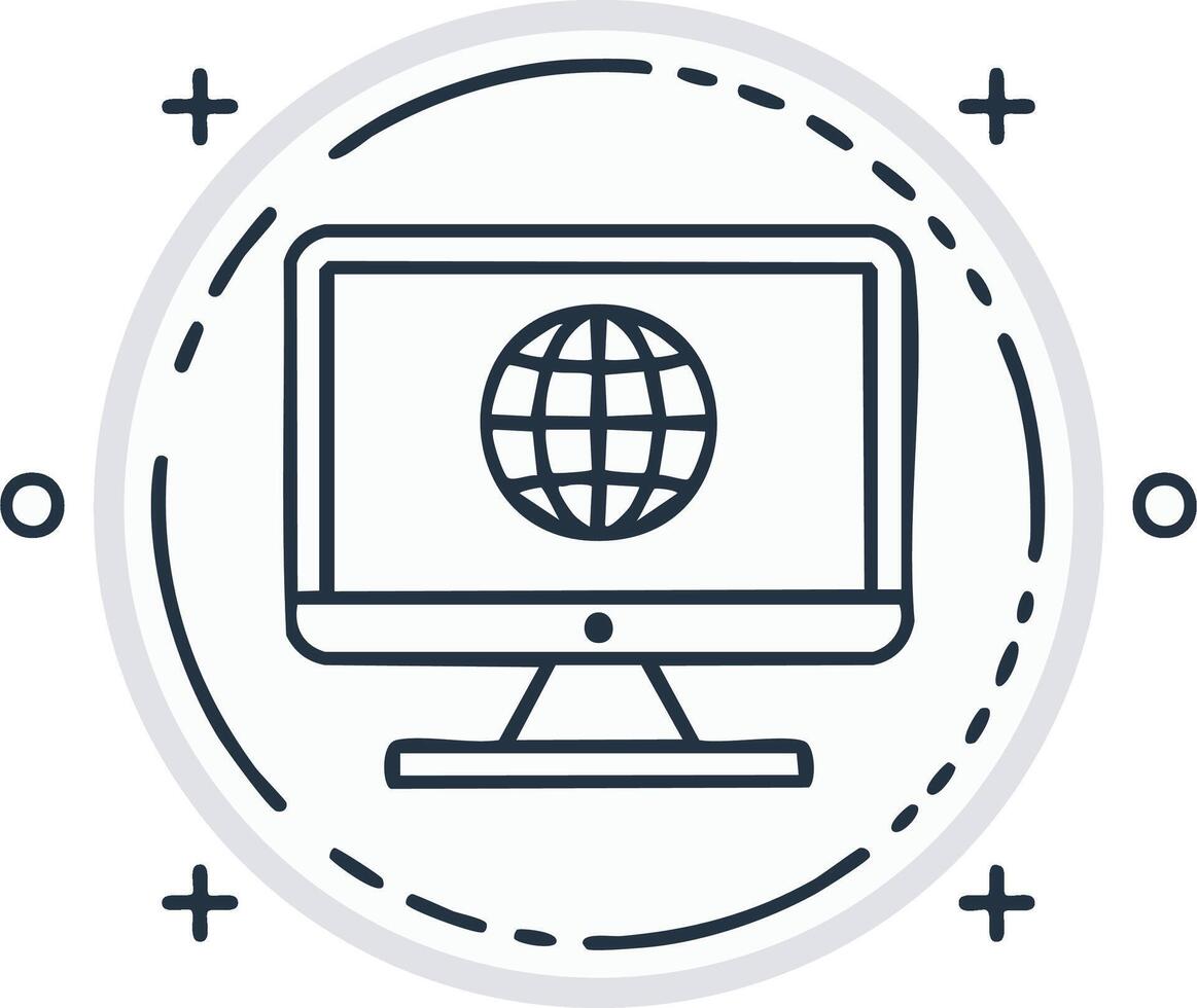 Desktop Computer with Globe Line Icon, Internet Connection Symbol Pro Vector