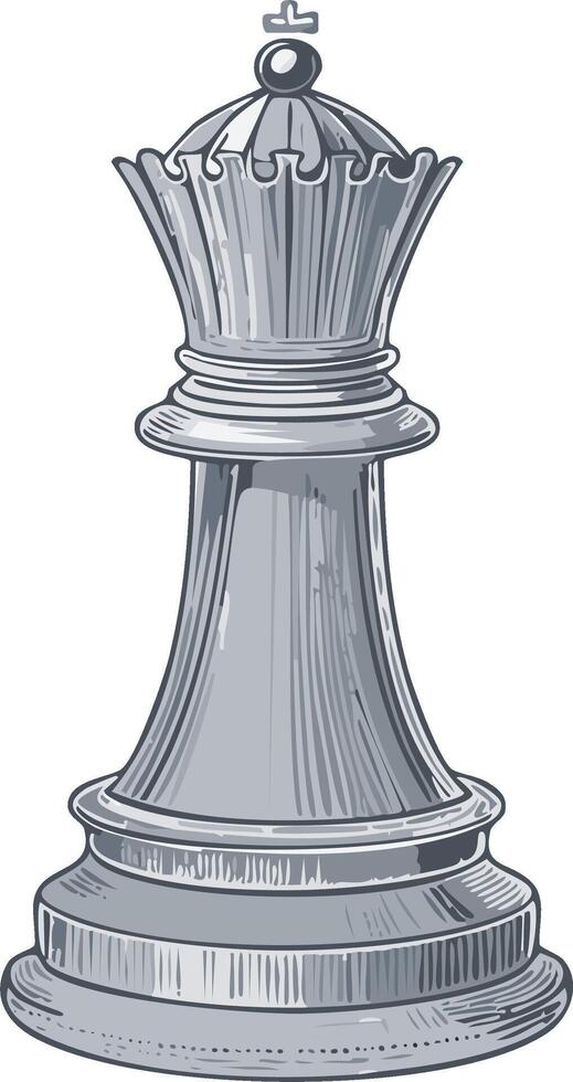 Stylized Chess Queen Piece in Silver Tones Depicting Strategy Game, Royal Power, and Board Game Fun, Isolated Object Pro Vector