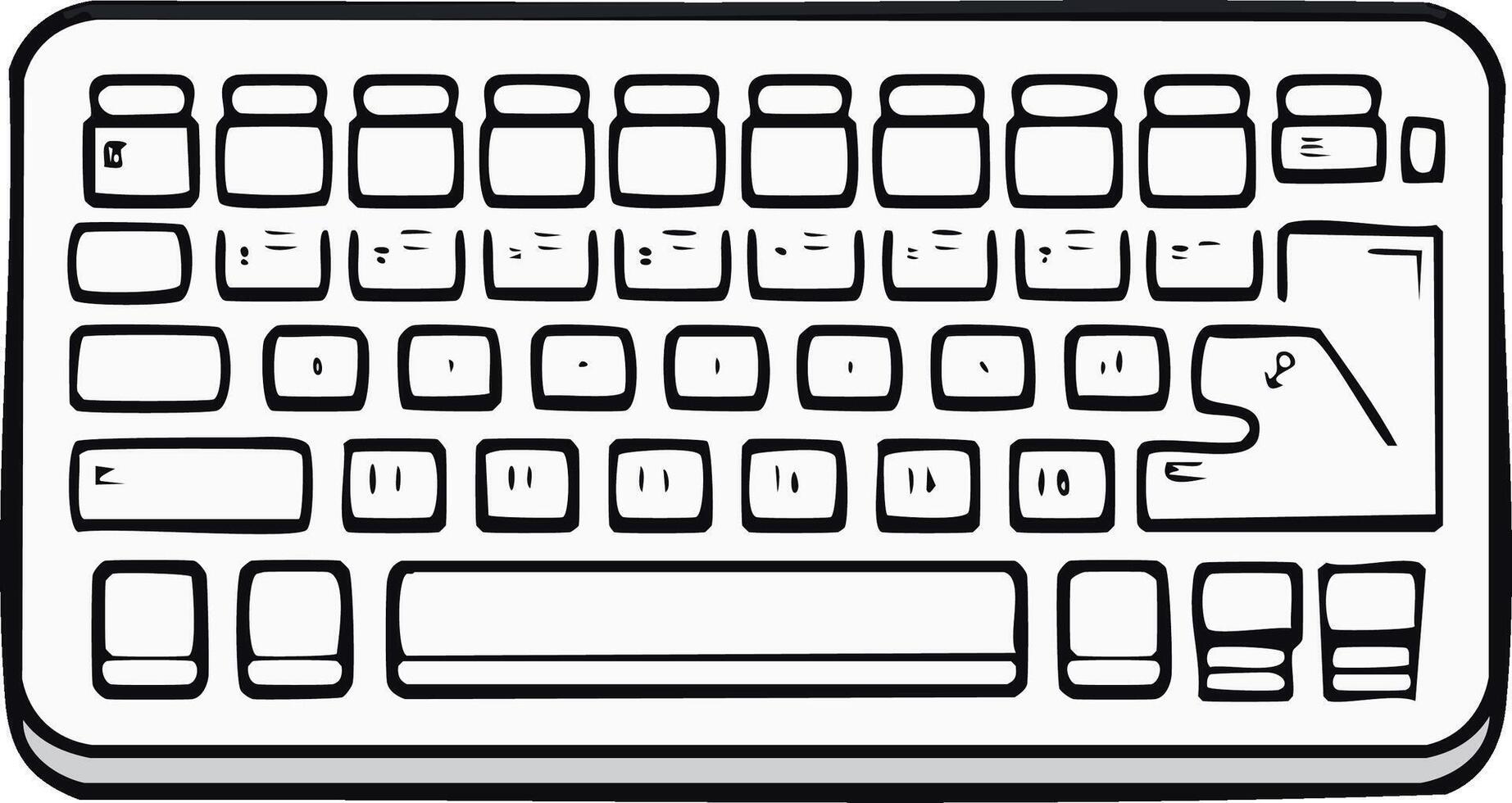 Simple outline drawing of a modern keyboard with blank keys and a unique touchpad layout Pro Vector