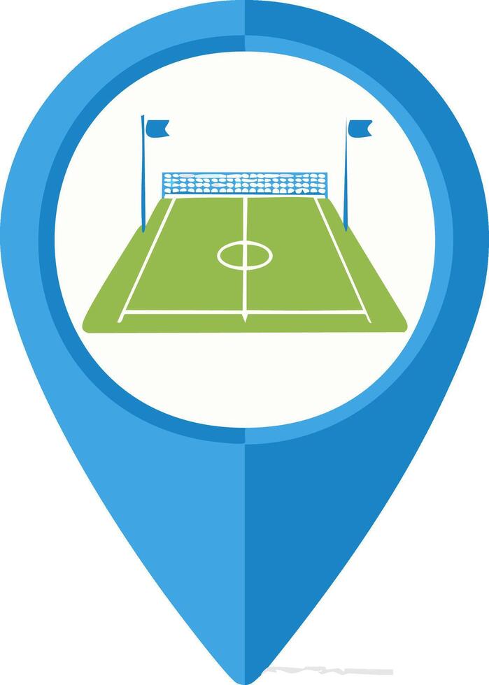 Blue Map Pointer Featuring a Green Tennis Court with Net and Flags Locators Pro Vector