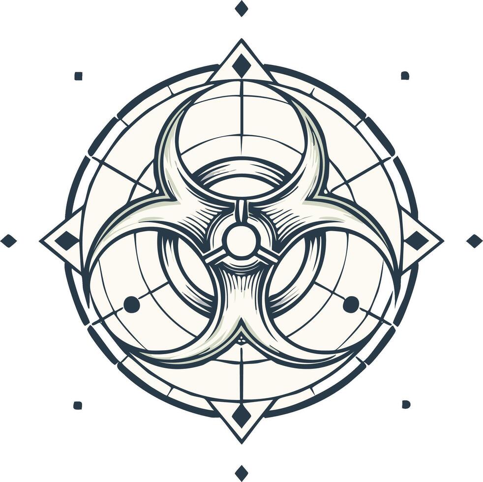 Intricate biohazard symbol centered within a circular geometric pattern indicating danger and risk Pro Vector