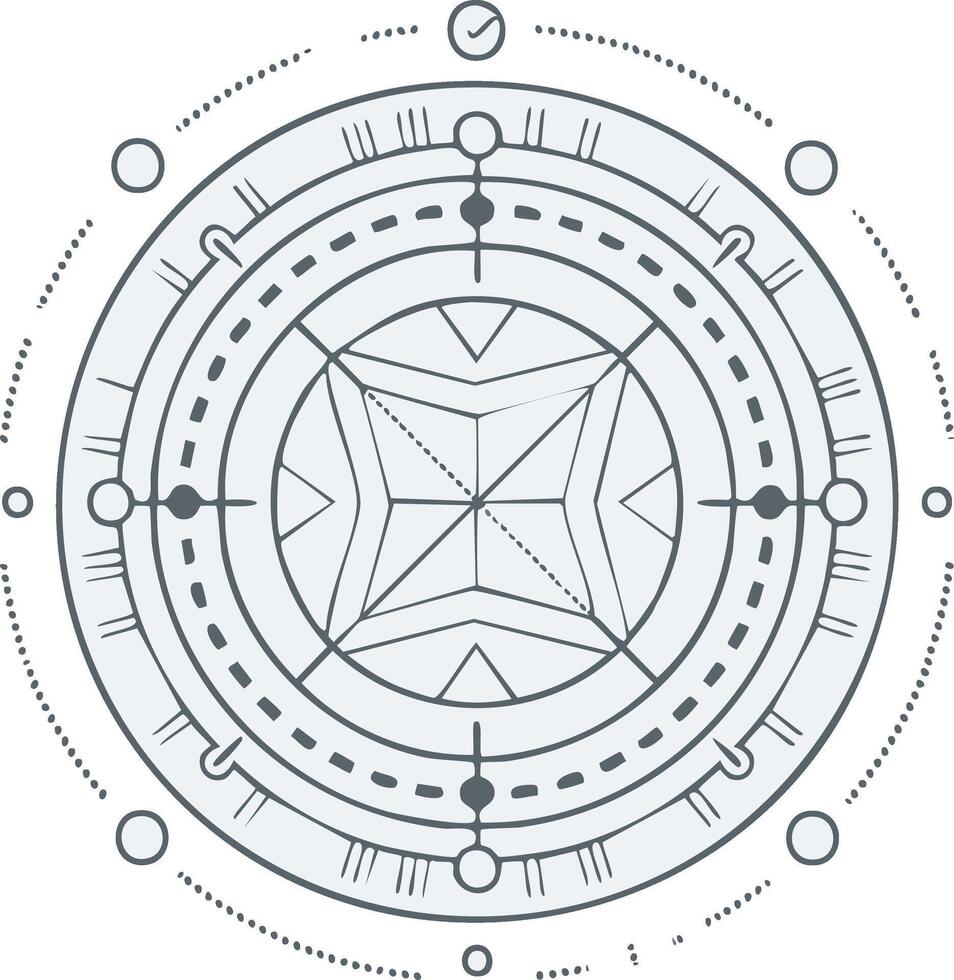 Geometric abstract circular design with interconnected lines and dots resembling a compass or mandala Pro Vector