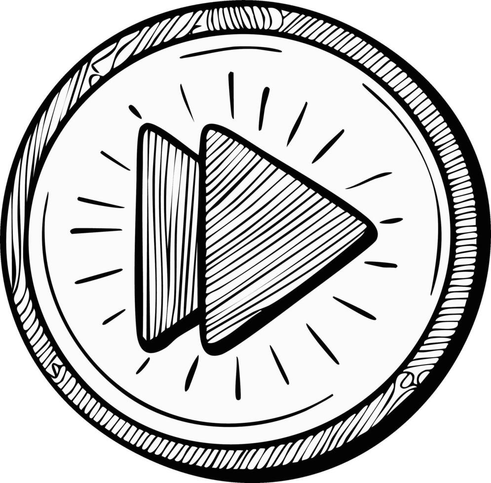 Sketch style rewind icon in a circle with decorative outer circle Pro Vector