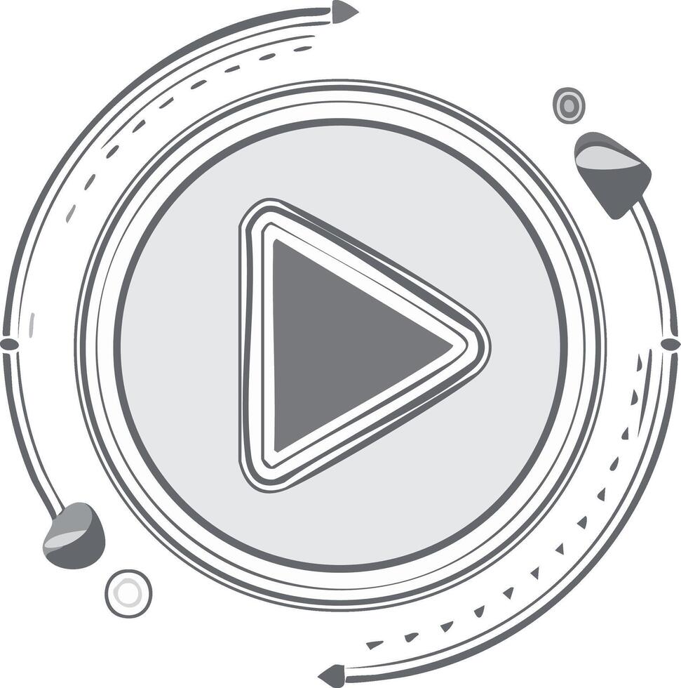 Stylized Play Button in Circle with Geometric Elements and Decorative Arrow Accents Pro Vector