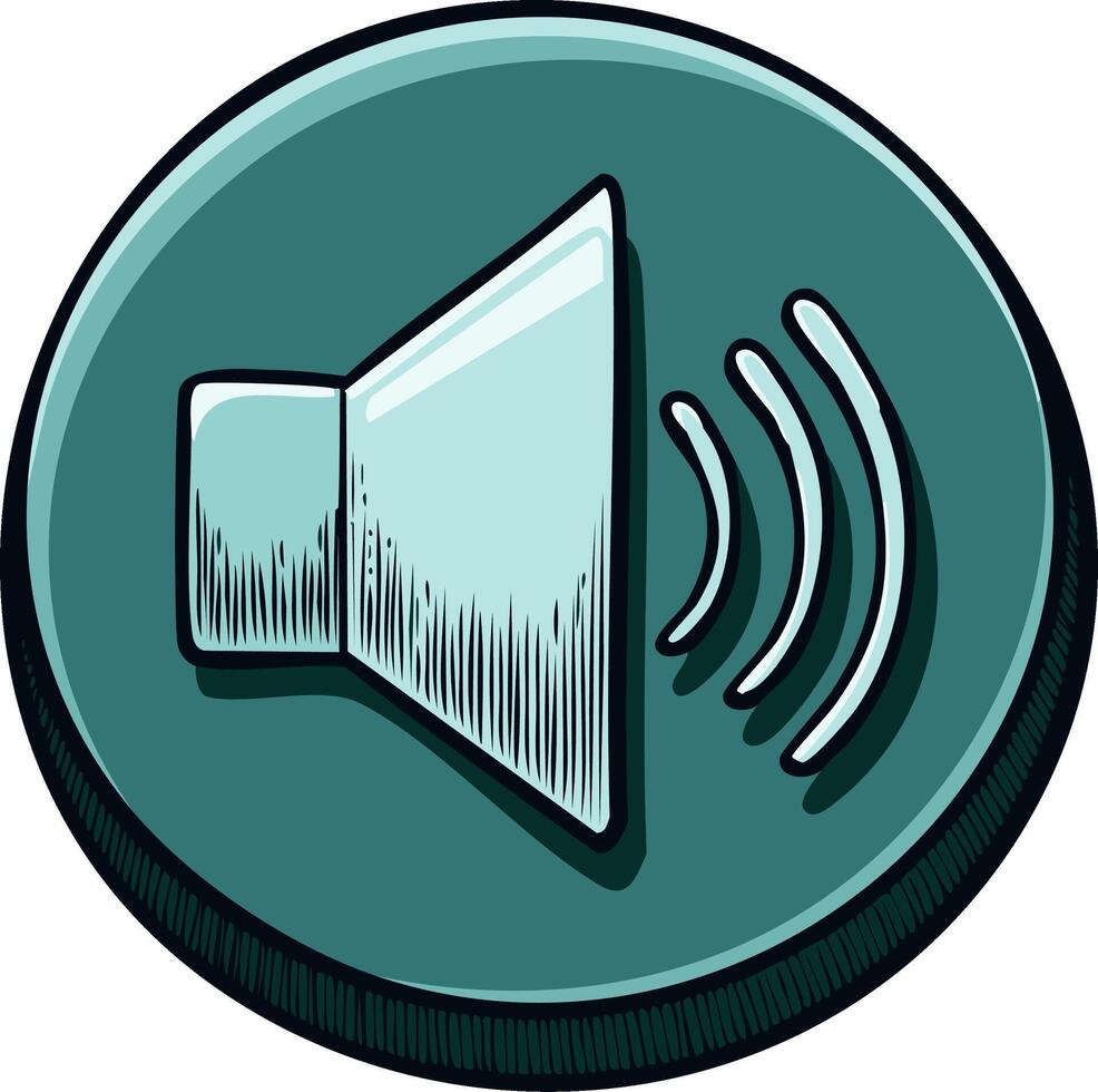 Hand drawn audio sound speaker symbol with waves on a green circular user interface button Pro Vector