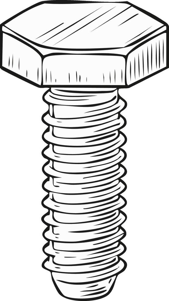 Illustration of a Hex Head Cap Screw with Clear Threading, Drawn in Outline Style for Technical Diagrams Pro Vector