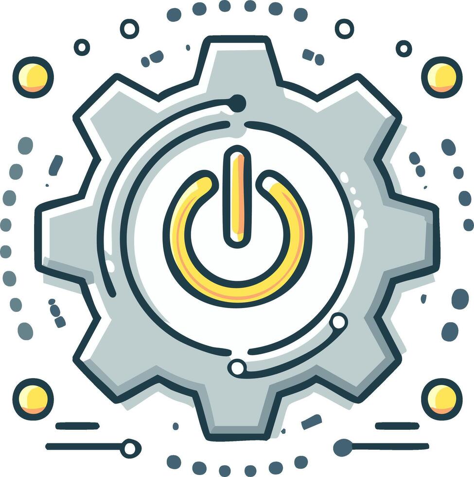 System activation and technology concept with a power button inside a gear cartoon illustration Pro Vector