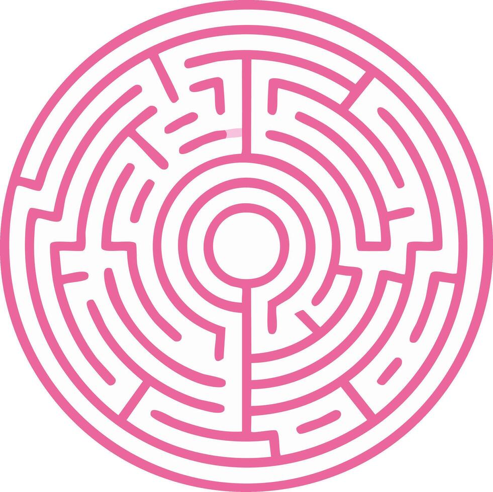 Pink circular maze puzzle. Labyrinth challenge game and problem-solving concept Pro Vector