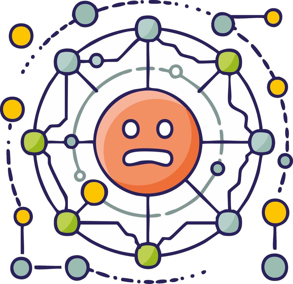 Sad emotion face in network connected by lines. Concept of internet security and system failure warning Pro Vector