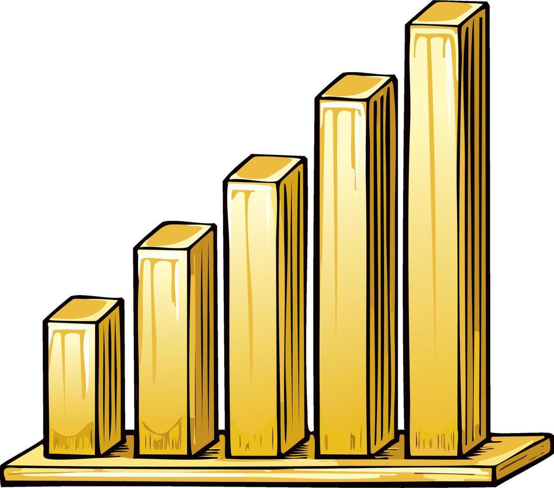 Golden Bar Chart Illustrating Growth Progress or Statistical Increase in Value, Upward Trending Columns Pro Vector