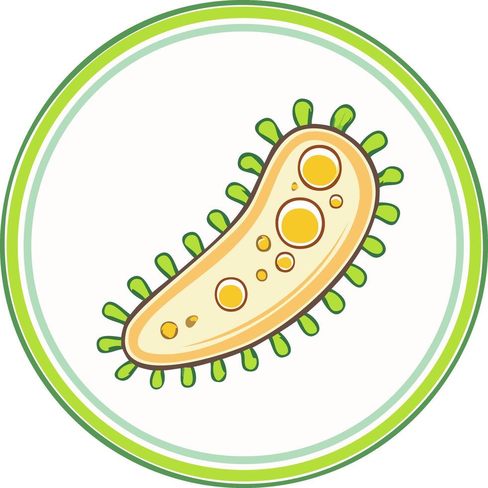 Single Beige Bacterium Cell with Green Cilia Floating in Circular Green Frame Symbolizing Microscopic Life Pro Vector