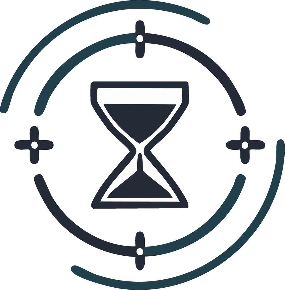 Hourglass Symbol Encapsulated by Target Sight Circular Icon Emphasizing Time Management and Precision Pro Vector