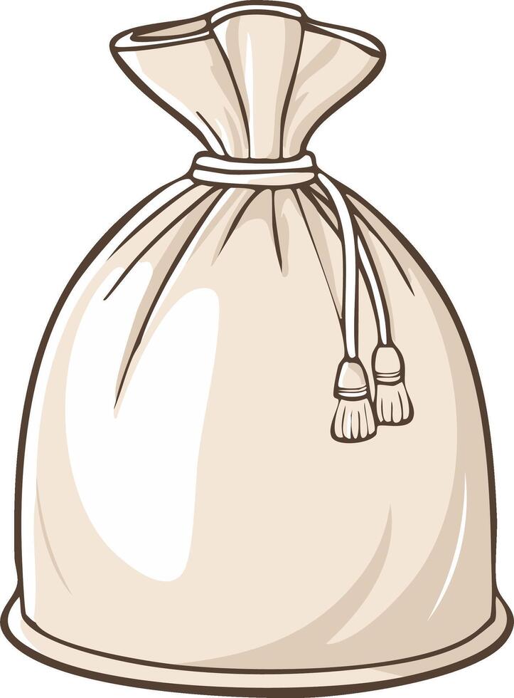 Simple illustration of a drawstring fabric bag with tassels in a clean style Pro Vector