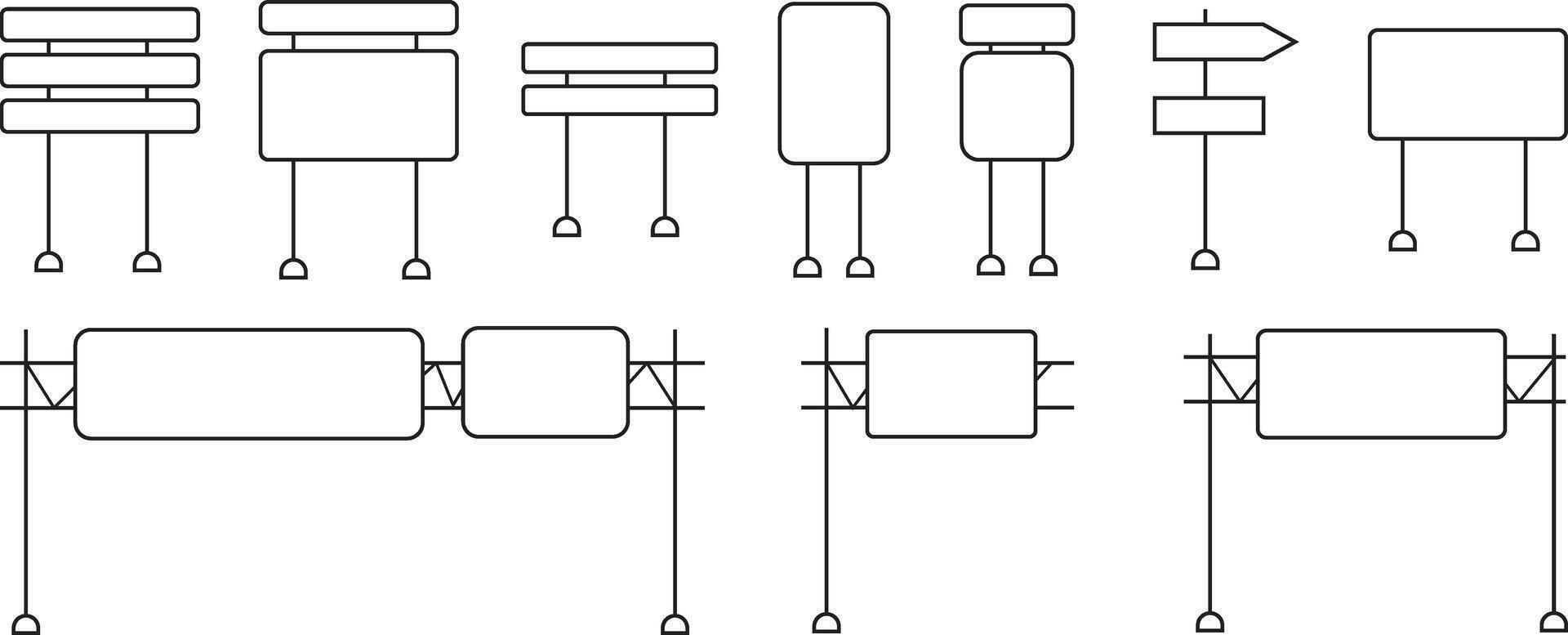 Empty black traffic sign board set, outline road signage icon collection, blank directional graphic group, editable design elements for warning, information, navigation, and transportation projects Pro Vector