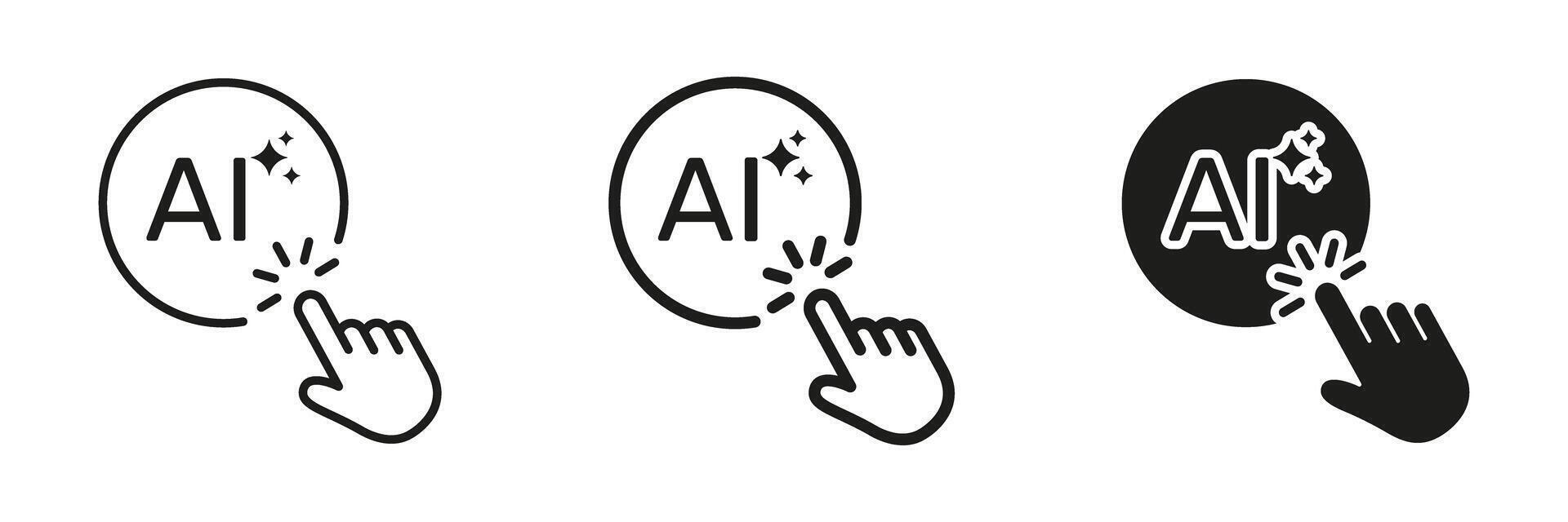Ai Click Icon Set. Artificial Intelligence Engagement And User Interface Interaction Outline And Silhouette Symbol Collection. Line, Outline and Solid Icons. Isolated Illustration Pro Vector
