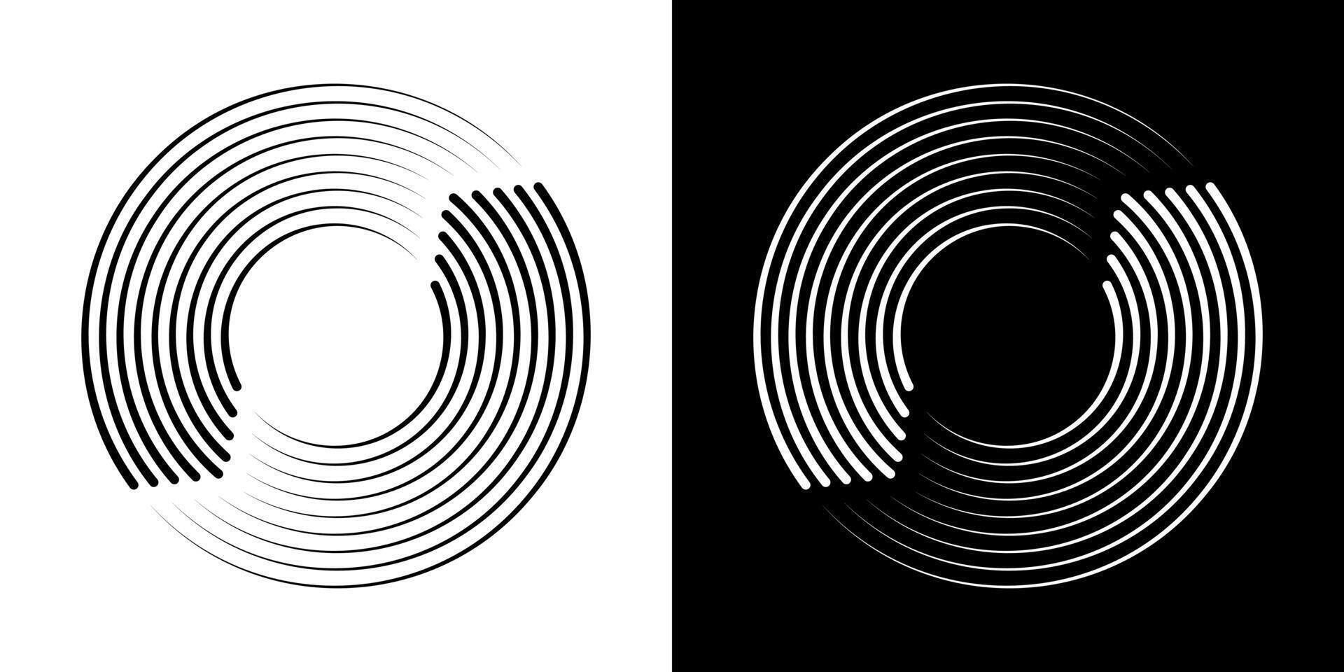 Concentric Circular Lines Icon Set. Abstract Geometric Pattern And Optical Illusion Design Outline Symbol Collection. Modern Minimalist Art. Isolated Illustration Pro Vector