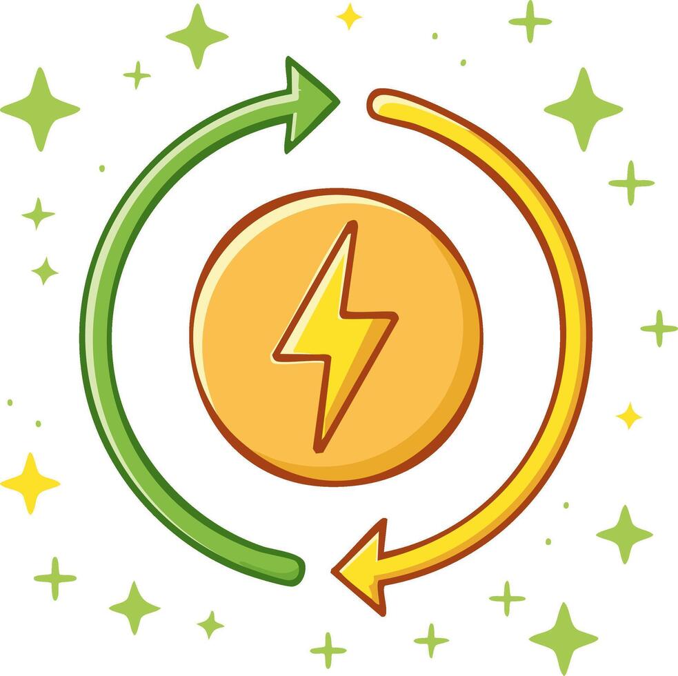 Renewable energy cycle icon with lightning bolt in circular arrows representing sustainable power generation Pro Vector