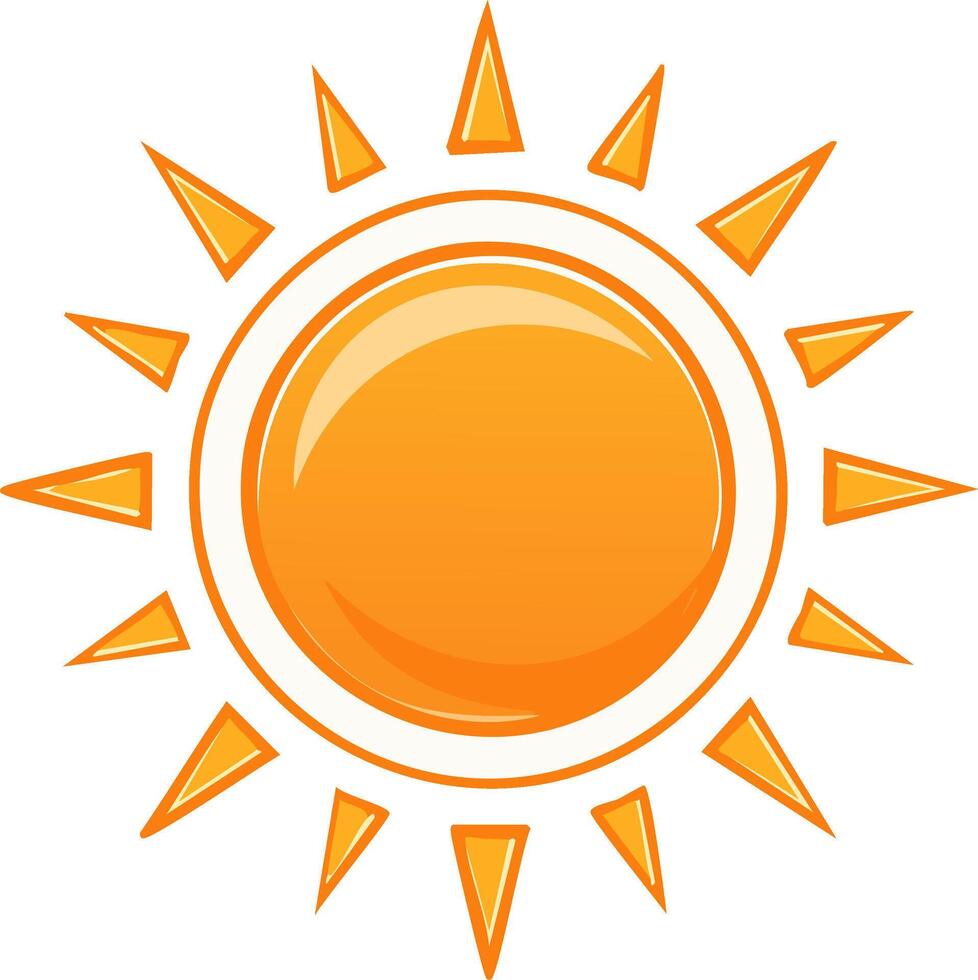Bright orange sun with sharp triangle rays spreading out on a white background graphic sun Pro Vector