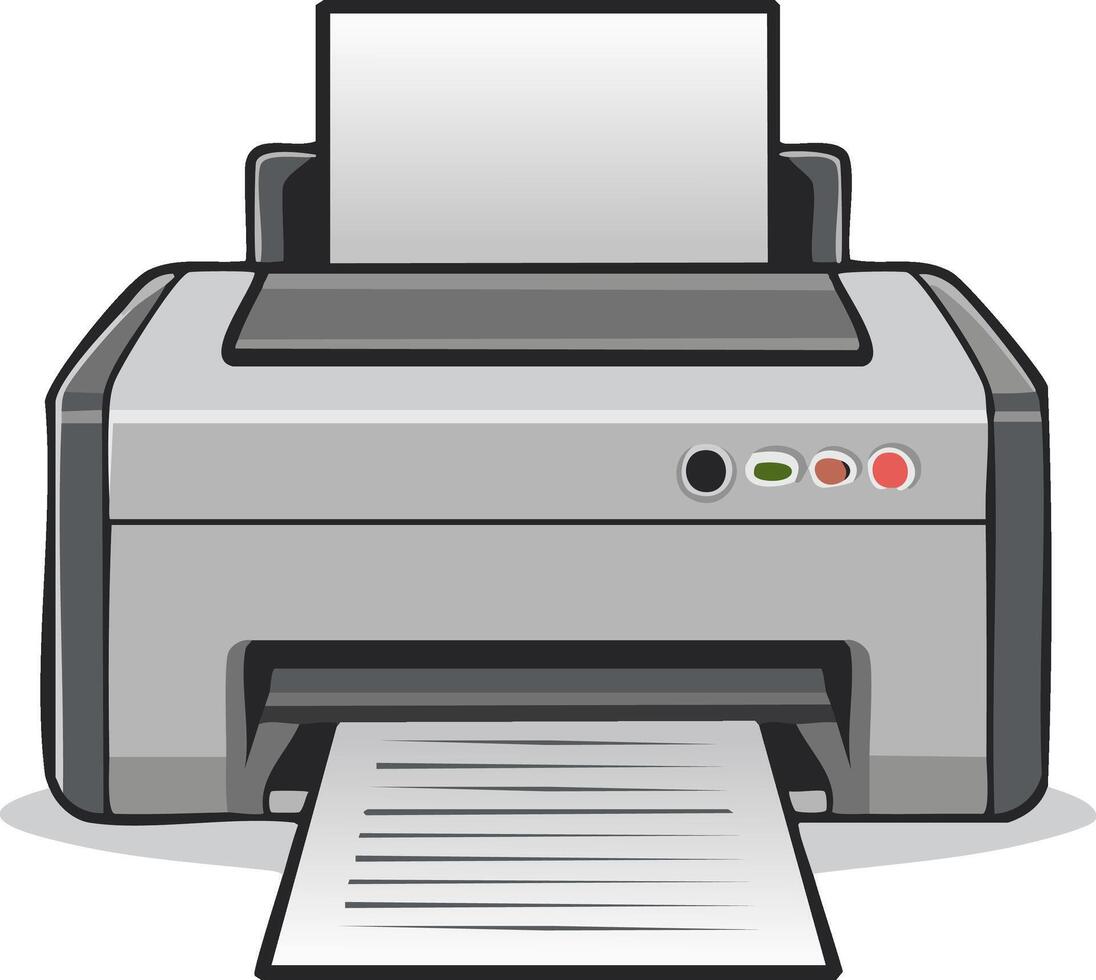 illustration of a modern office printer, printing document with paper output Pro Vector