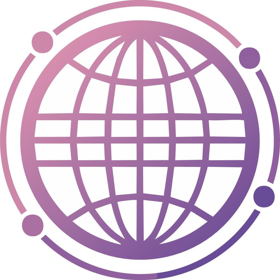 Gradient globe icon with orbital rings and nodes for global network and technology Pro Vector