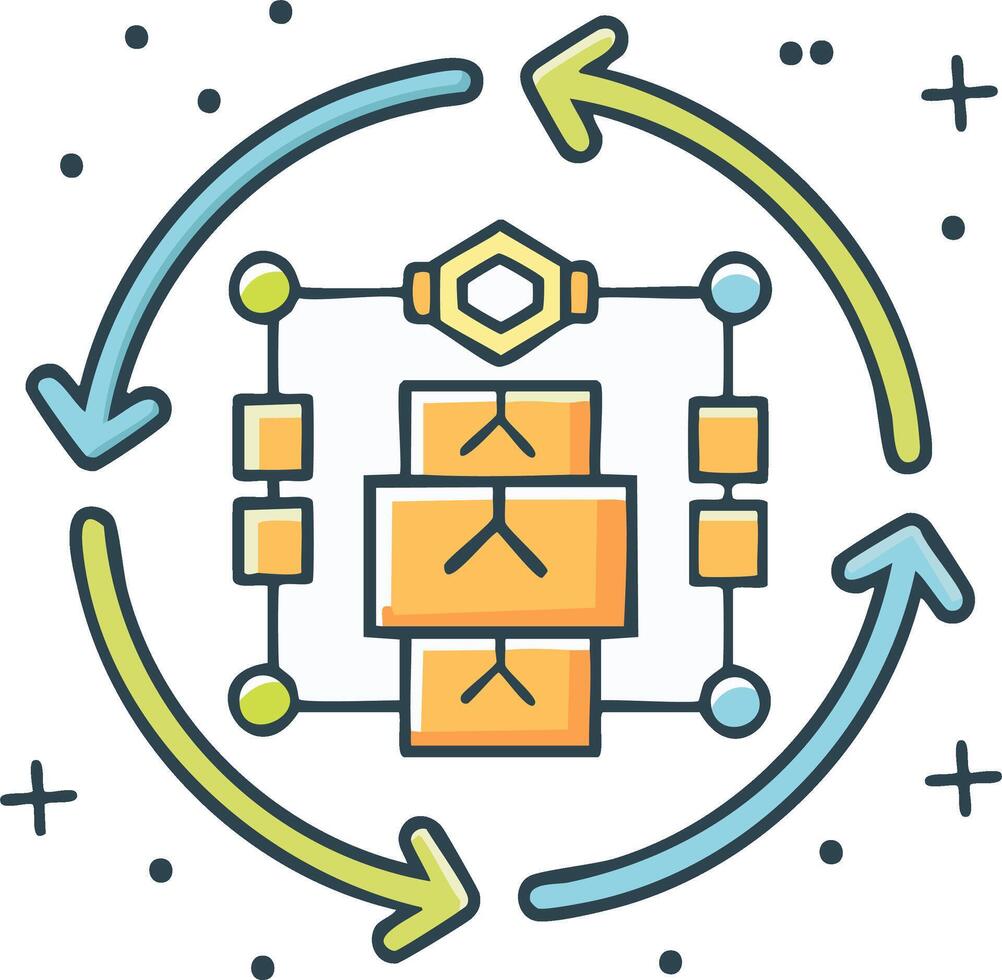 Circular workflow process diagram with interconnected abstract system elements and continuous flow Pro Vector
