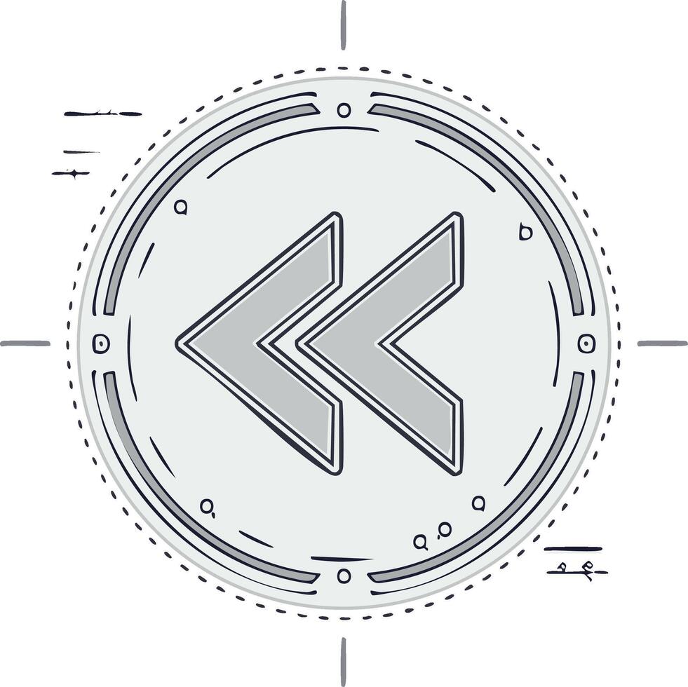 Hand drawn rewind button icon with a futuristic circular interface Sketch style Pro Vector
