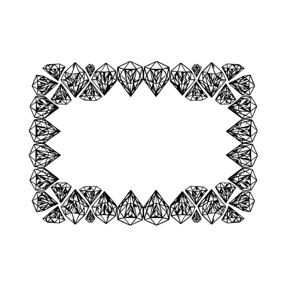 A sophisticated border meticulously crafted from faceted diamond shapes of varying sizes arranged in an elegant rectangular frame Pro Vector